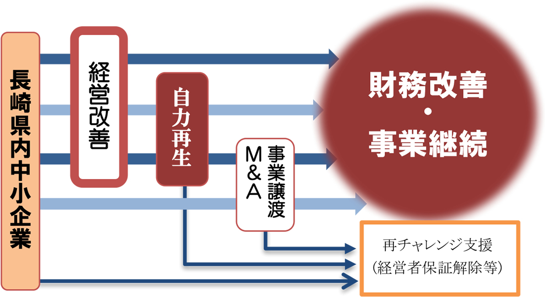 長崎県中小企業活性化協議会は、そんながんばっている中小企業の経営改善・事業再生・私的整理を専門的に支援するため設置された公的機関です。